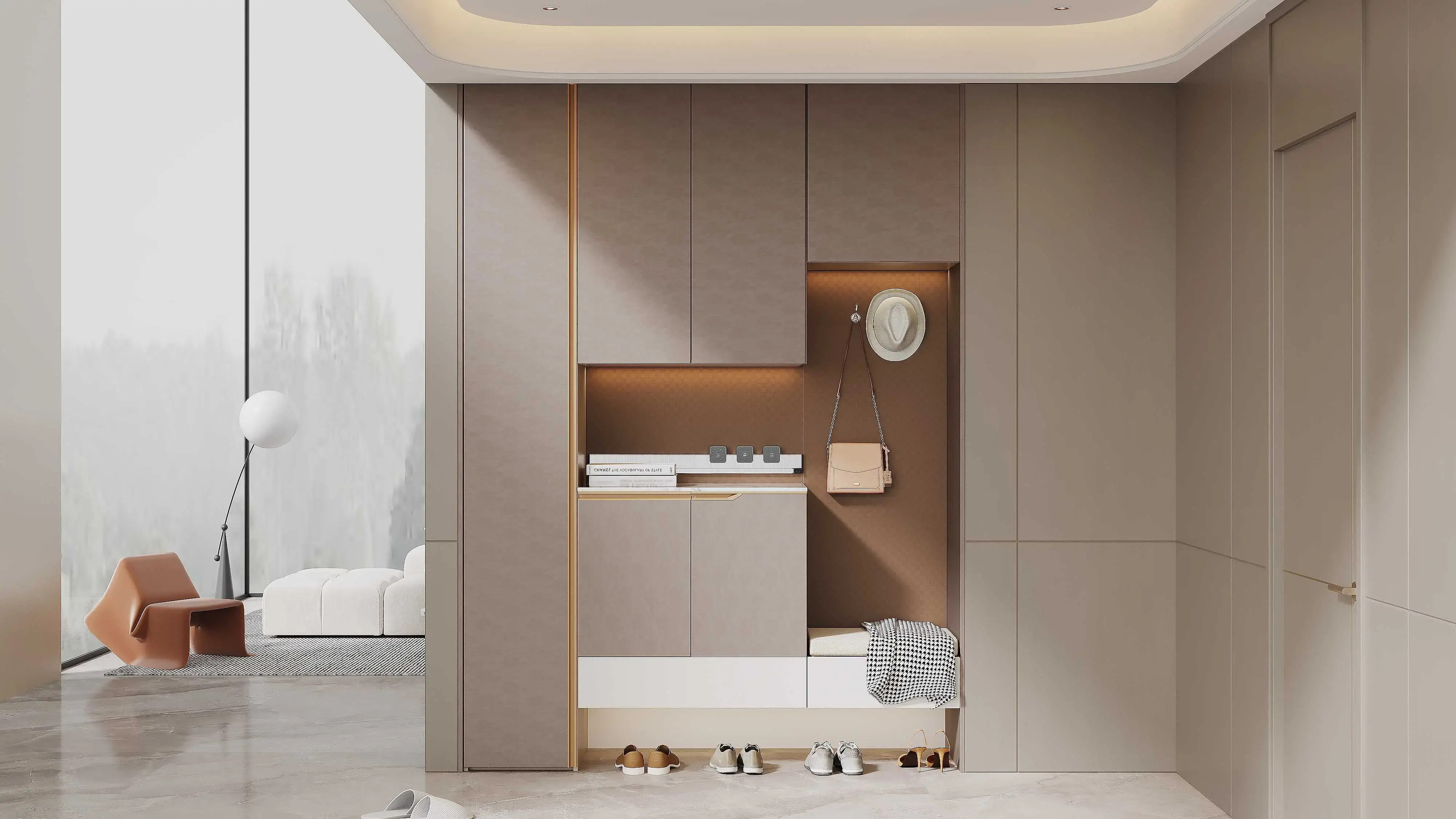 無把手櫃門、懸浮櫃體省空間,淺灰配原木色調,小戶型視覺擴容10㎡。